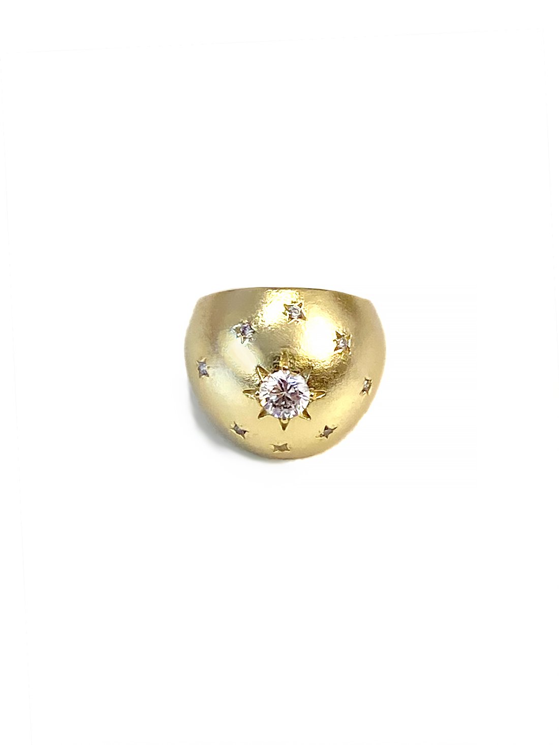 Dans l’Antiquité, on a donné aux constellations des noms de récit : Cassiopée, Andromède, Orion… Comme si le ciel était une bibliothèque, et chaque étoile un mot. Porter une bague constellation, c’est garder sur soi un fragment de ce langage ancien : un signe discret, mais chargé d’histoire. Une amulette contemporaine version Dear Charlotte, à porter comme une confidence.