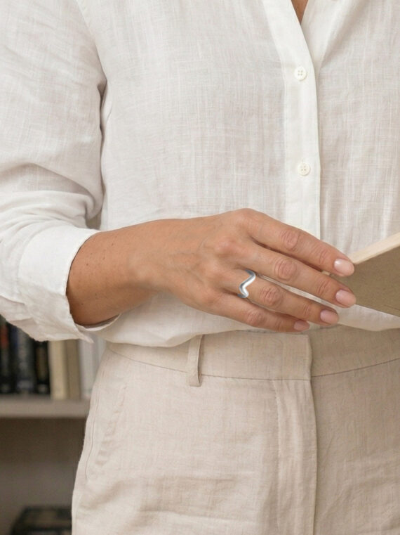 - Une forme de vague : Ce design audacieux nécessite un beau travail de conception. On a ici je juste fil, à la bonne épaisseur, qui s’adapte parfaitement au doigt.