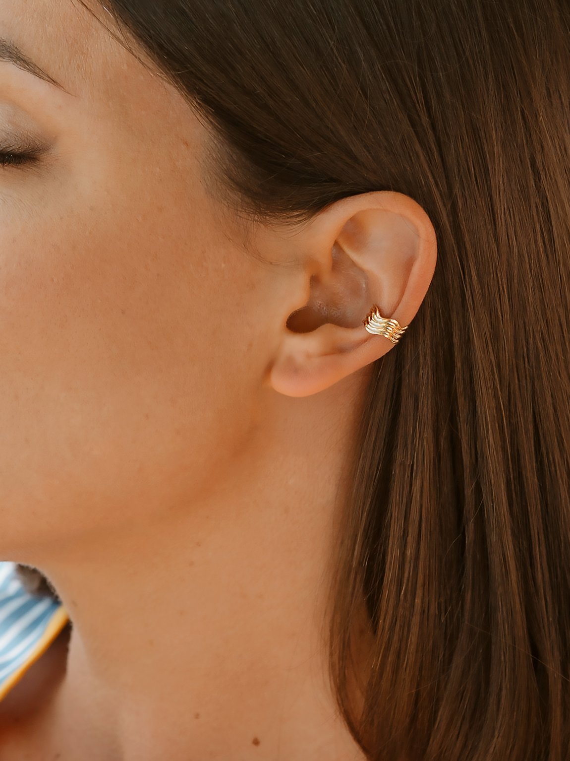 Nous aimons cette belle pièce pour sa liberté. Carla se porte sans perçage, seule ou glissée dans une composition, et donne immédiatement plus de mouvement à l’oreille. Sa petite taille la rend facile à adopter. C’est aussi une belle option pour celles qui aiment varier sans multiplier les contraintes. Elle se place facilement au milieu de l’oreille, en pivotant doucement vers l’intérieur, et peut se régler légèrement si besoin.