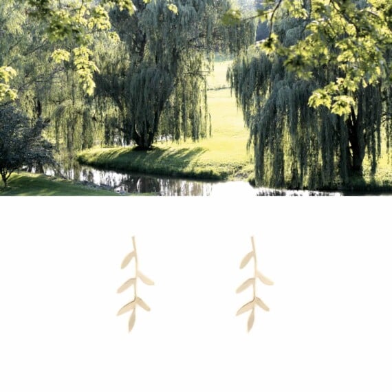 Voici la paire de boucles d’oreilles Saule, de la créatrice Christelle dit Christensen. Un motif végétal tout en finesse.