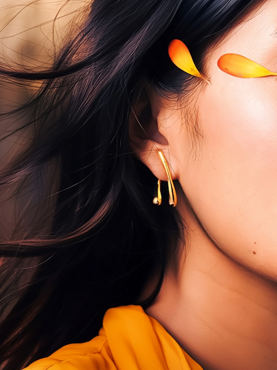 Pensées pour se porter aisément, les boucles Symbiose offrent un contour fluide qui épouse le lobe sans gêne. Leur poids léger assure un confort toute la journée, tandis que les courbes allongées des baguettes captent parfaitement la lumière.