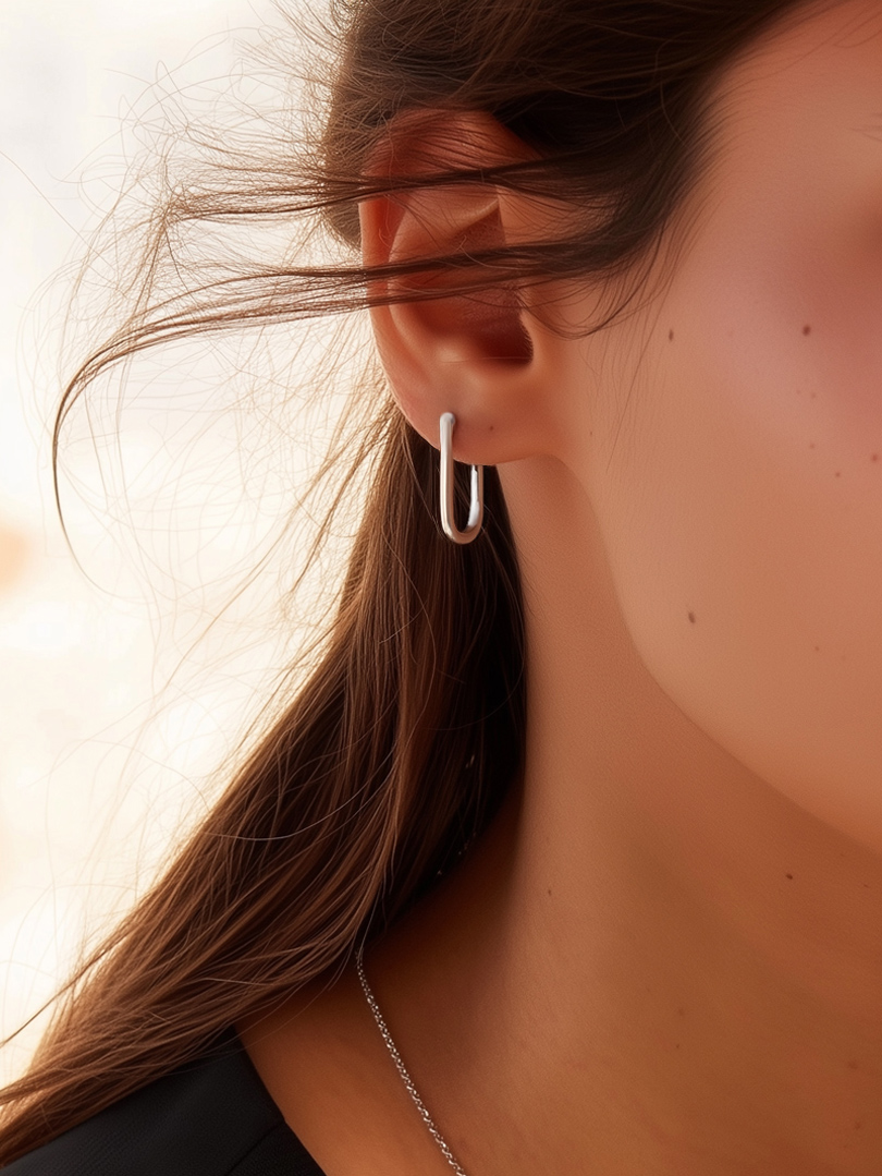 - Des boucles d’oreilles presque rectangles, mais pas tout à fait. On aime leur forme douce, arrondie aux angles. Elles vous habillent avec élégance.