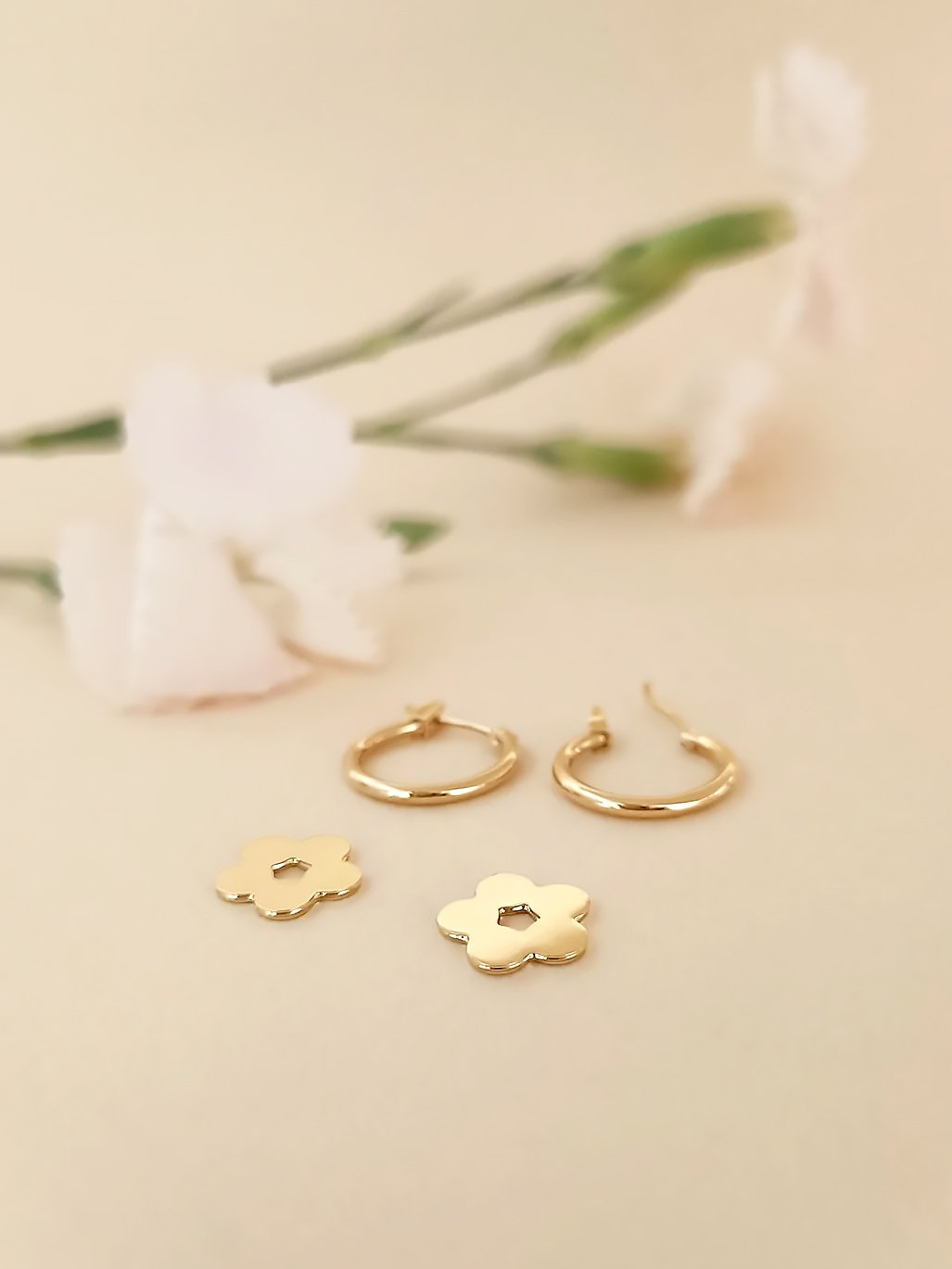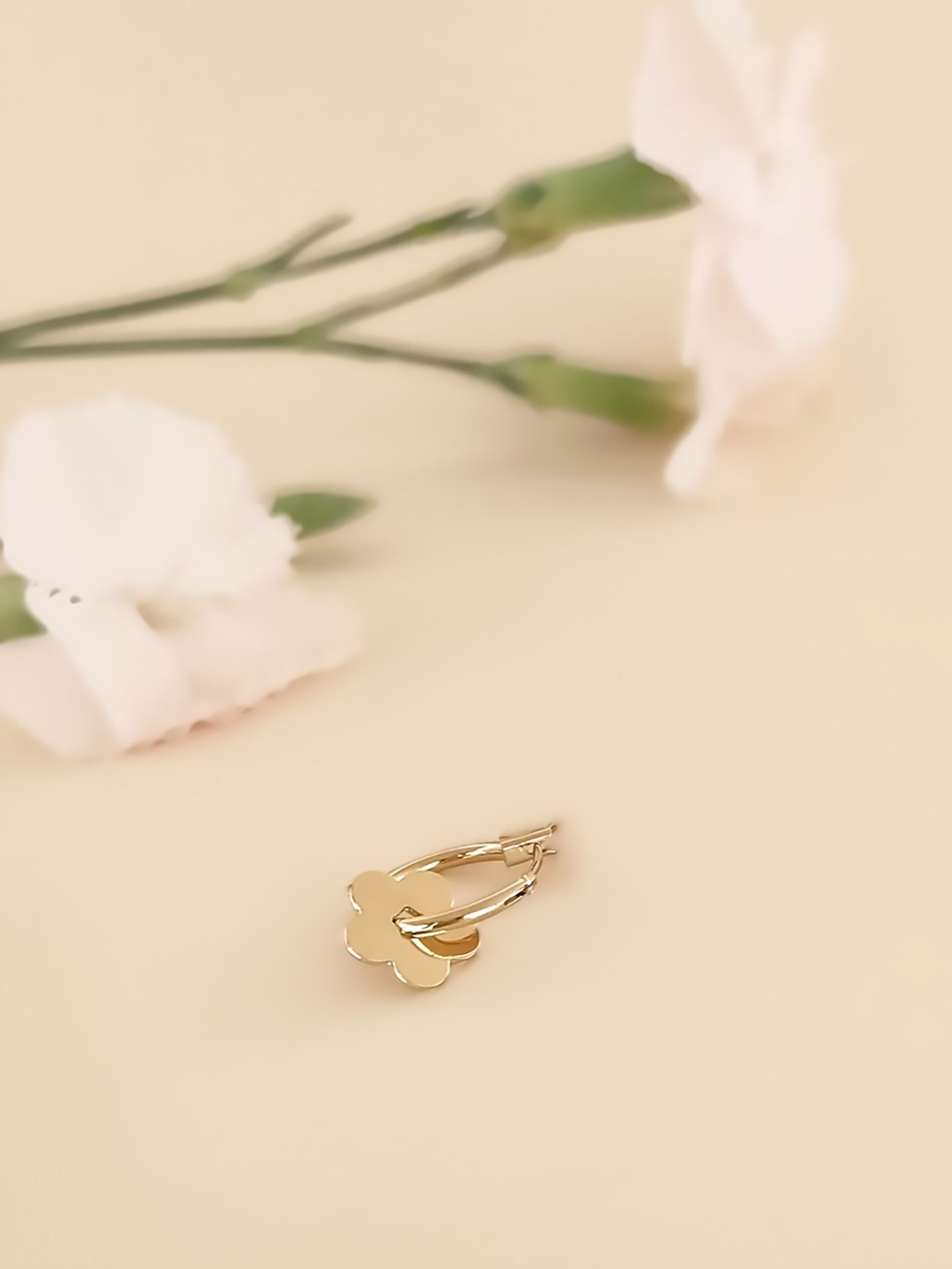La Mono boucle créole Rose est un bijou association une fine créole dorée et une fleur. Un style romantique bohème, simple et élégant.