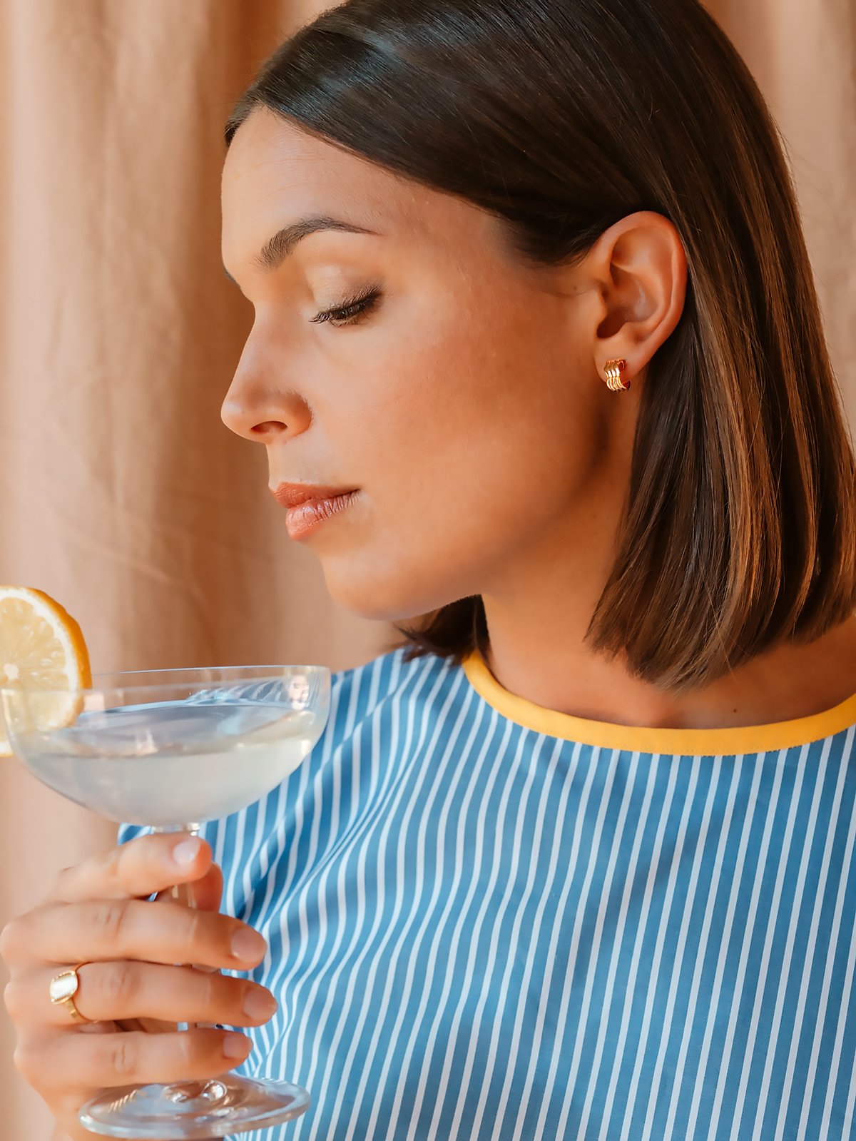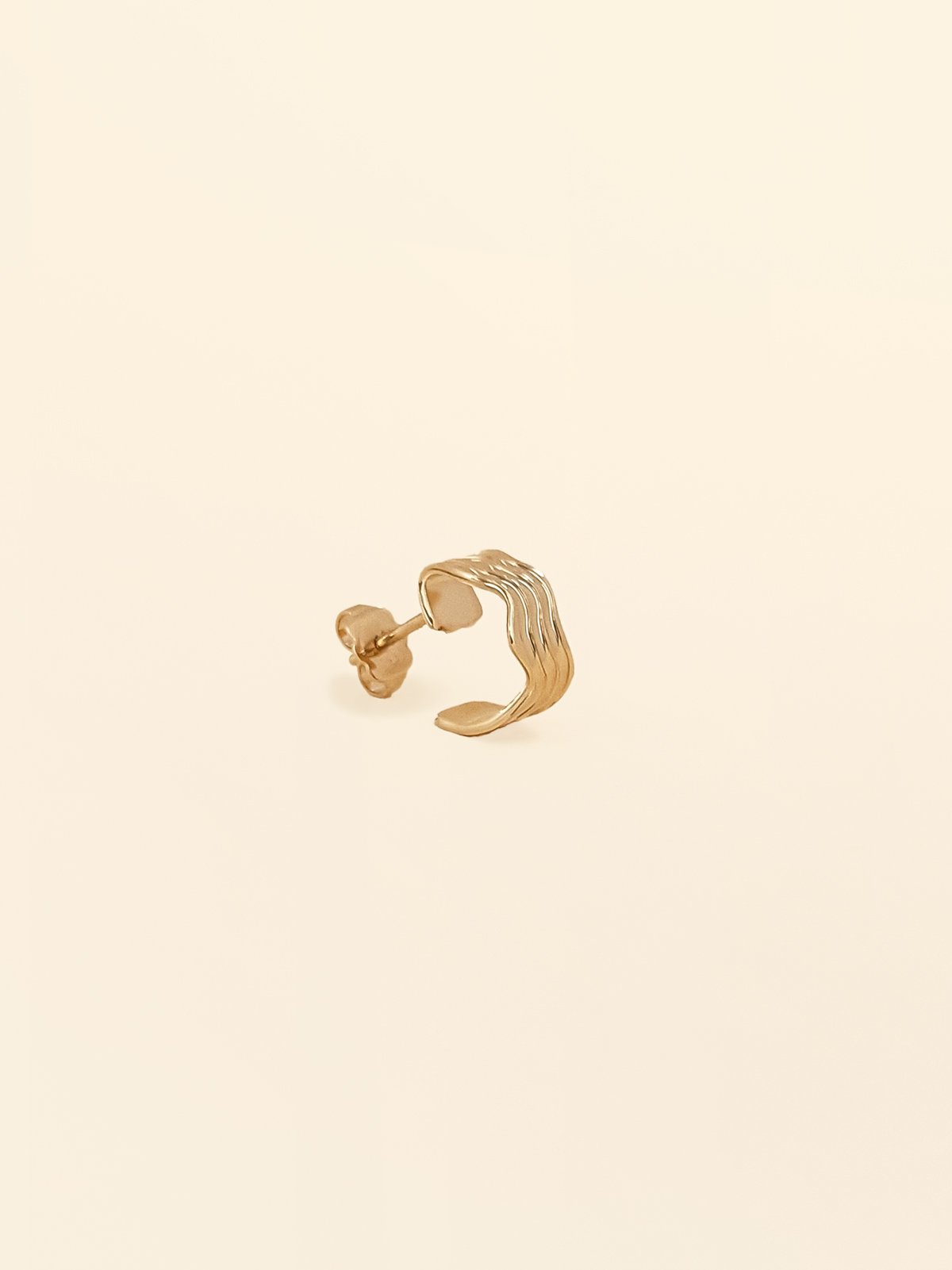 La Mono boucle d’oreille dorée Carla est un bijou élégant et discret. Sa forme de mini créole, striée et légèrement ondulée, apporte du relief et de la légèreté.