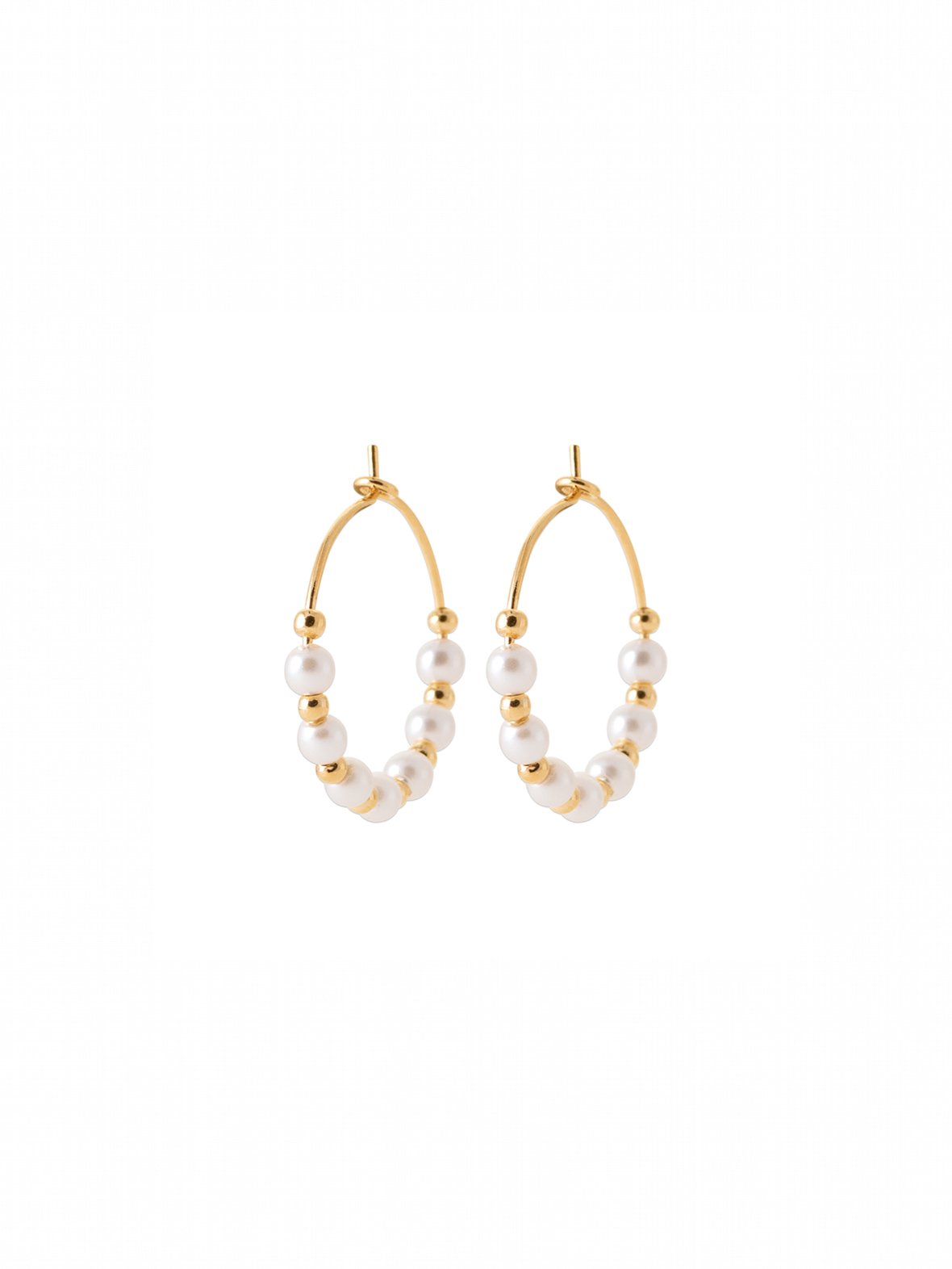 Vos Petites créoles perles plaqué or Oia forment un essentiel “quiet luxury” : elles seront parfaites avec une chemise blanche ou une robe noire, et faciles à associer à vos joncs et bagues dorés.