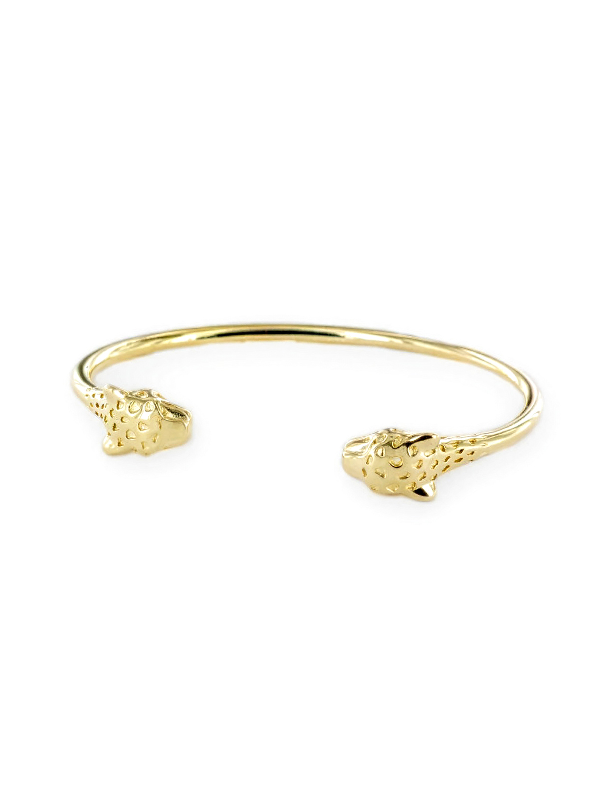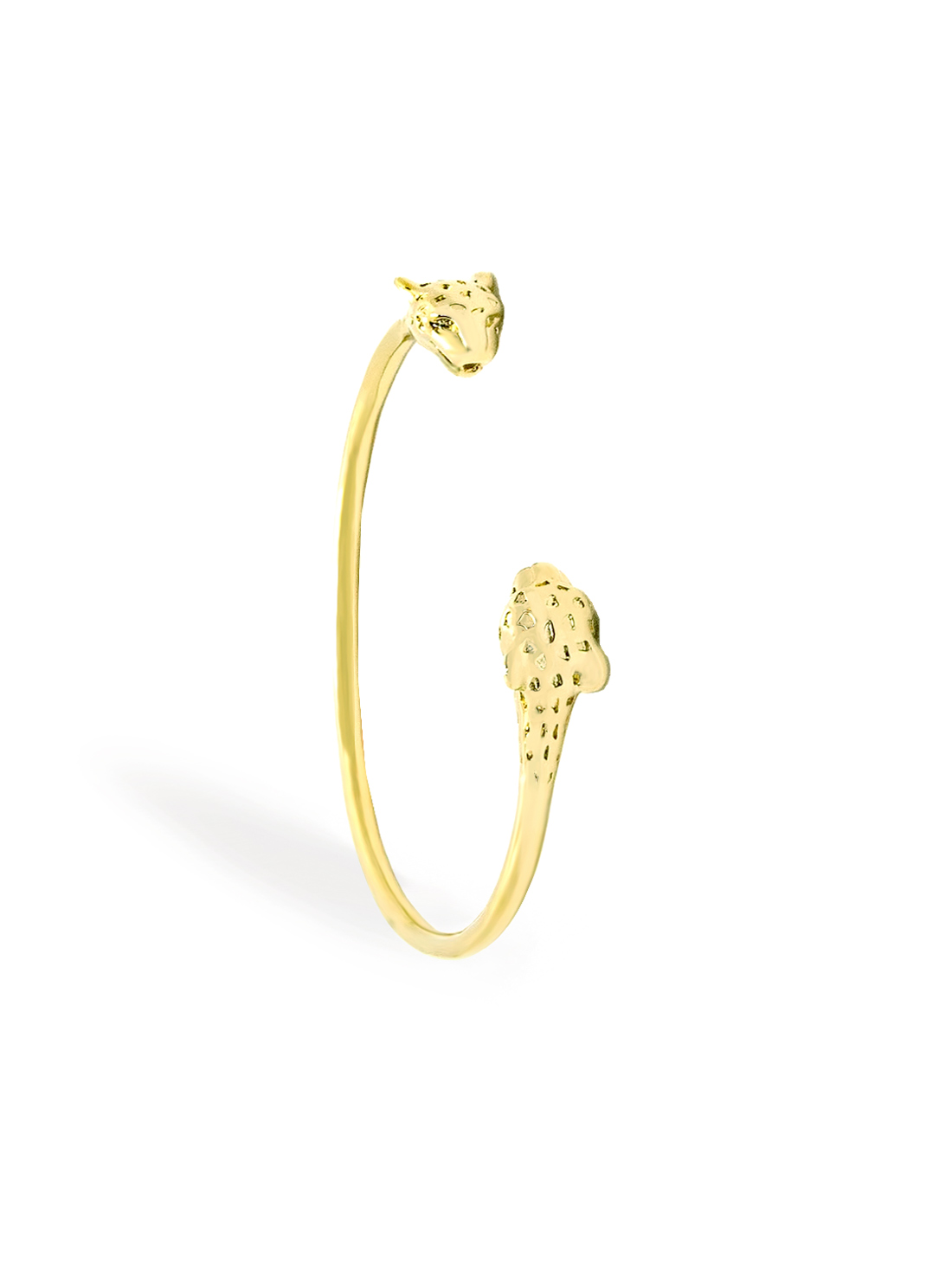Ce jonc panthère plaqué or Luna se porte aussi bien seul, pour une allure épurée, qu’en accumulation avec d’autres bracelets dorés pour un poignet plus habillé.