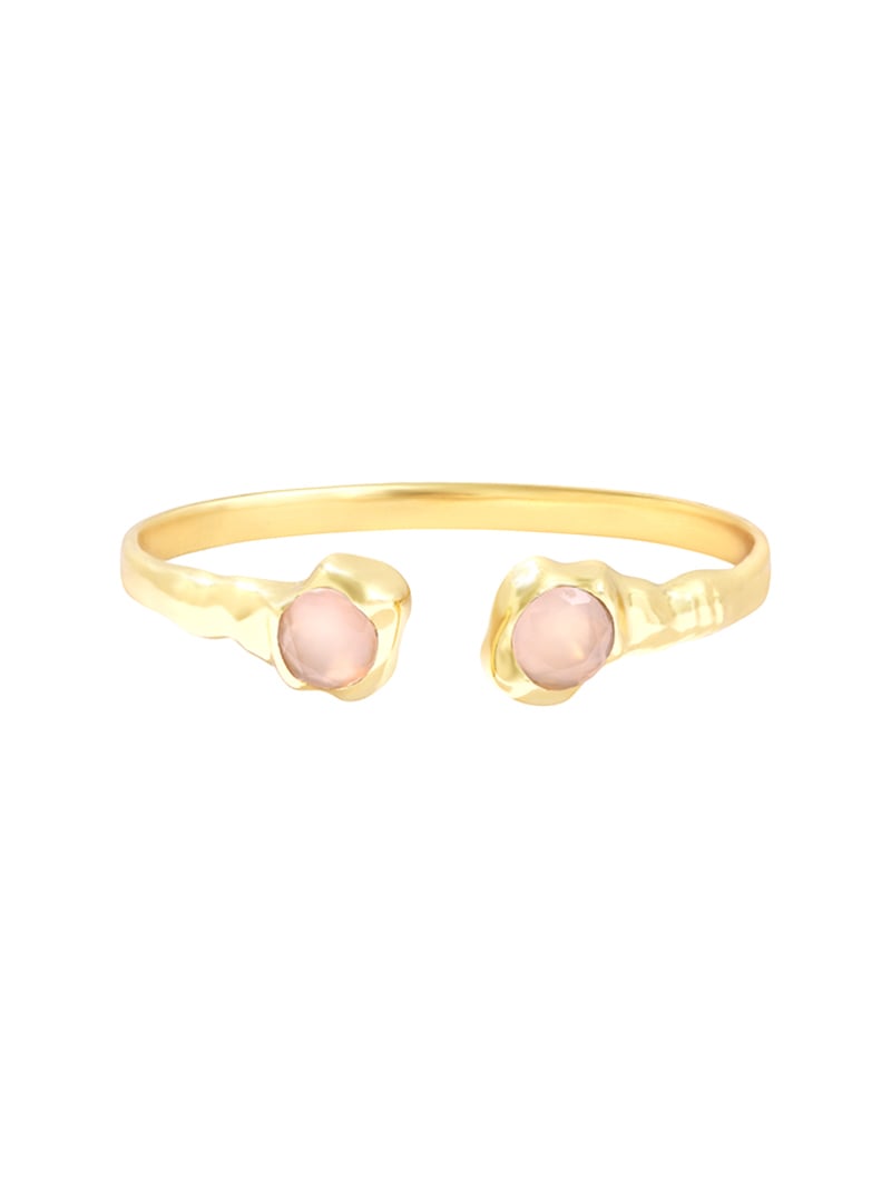 Pierre de douceur par excellence, le quartz rose diffuse une lumière laiteuse grâce à de fines inclusions qui voilent légèrement la matière et lui donnent cet effet “peau de pêche”. Ses gisements emblématiques (Brésil et Madagascar) offrent des nuances allant du rose pâle au blush soutenu. Sur un jonc, il arrondit le dessin et apporte une note apaisante, presque tactile. On lui associe volontiers l’idée d’harmonie ; nous aimons surtout sa discrétion lumineuse, qui se marie à tout. Entretien simple : évitez parfums, chocs et baignades, puis lustrez d’un chiffon doux pour raviver son satiné.