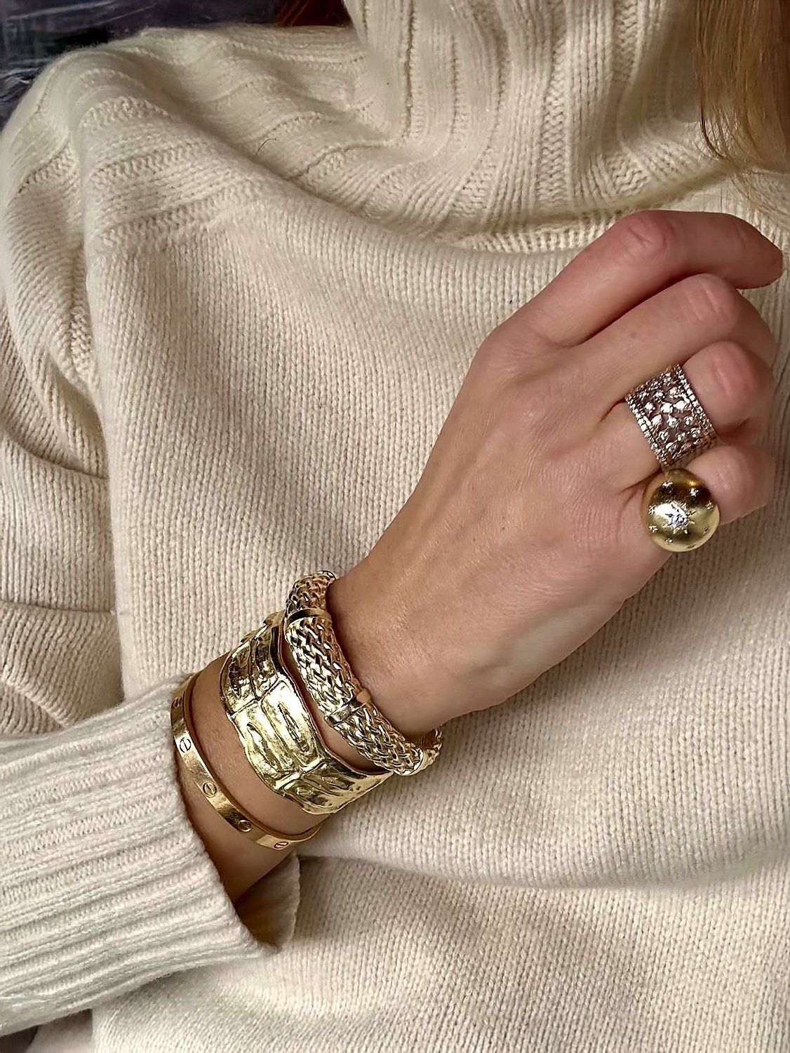 Notre avis : On valide cette réédition, bien évidemment ! Dear Charlotte signe un bijou d’une élégance rare. On aime follement cette ligne vintage, vivifiée par un souffle nouveau. On trouve dans ce jonc tressé doré une âme résolument contemporaine, aussi tendre qu’audacieuse.