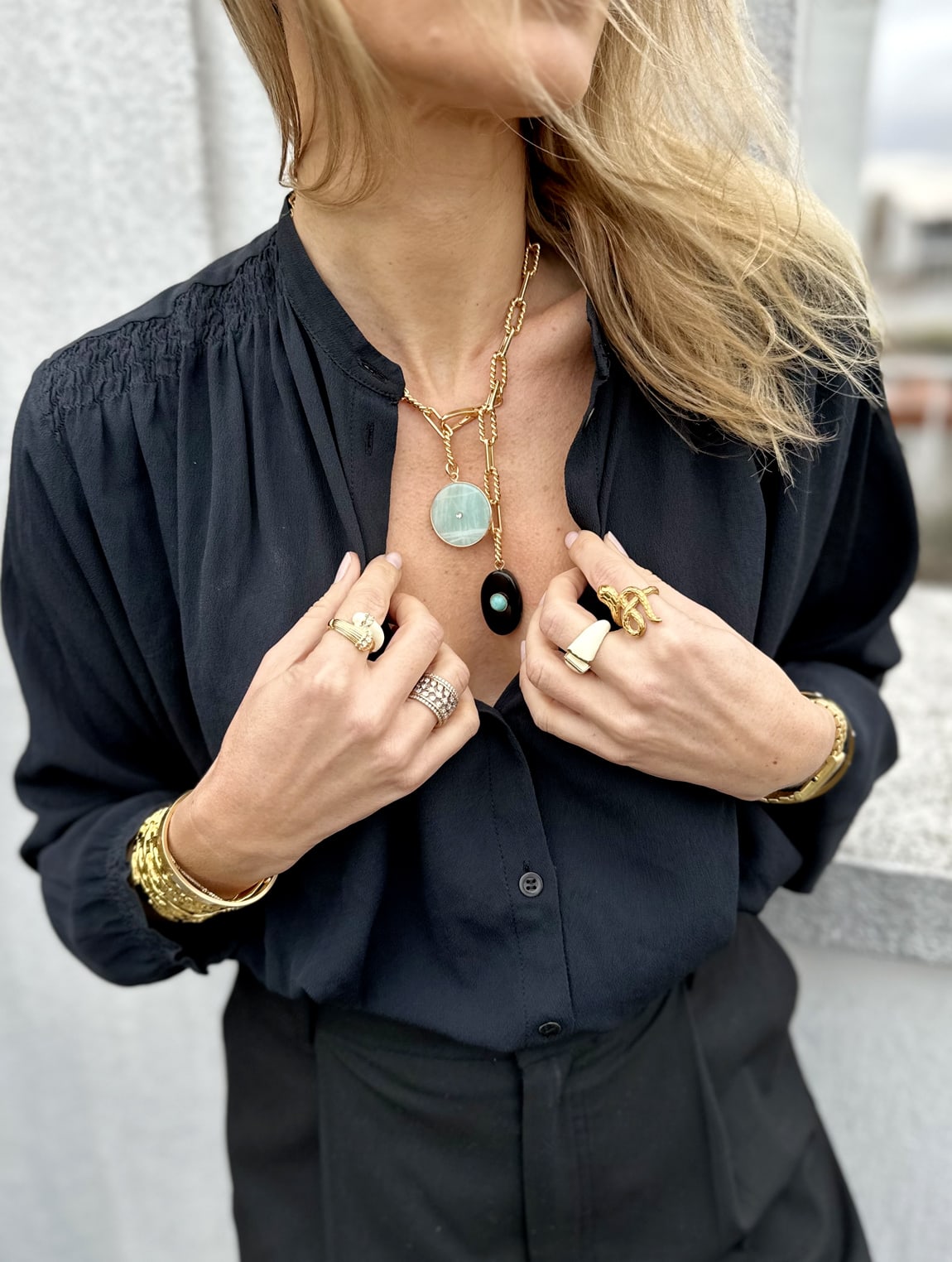 Le collier double Amazonite et Onyx Lavezzi à l’honneur :