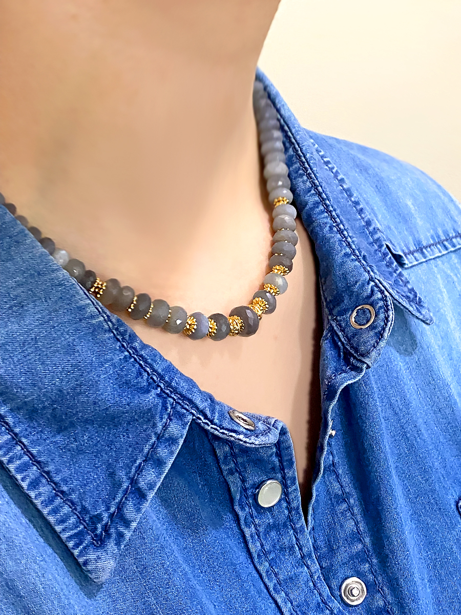 Collier en pierre de Lune grise Alba
