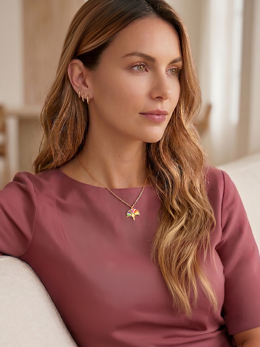 Voici le Collier Palmier arc-en-ciel, pour apporter une tonalité bohème et poétique à votre votre tenue du jour. Ce bijou fin se porte très facilement. Vous pouvez même jouer la carte de l’accumulation, en utilisant d’autres trésors de votre boîte à bijoux.