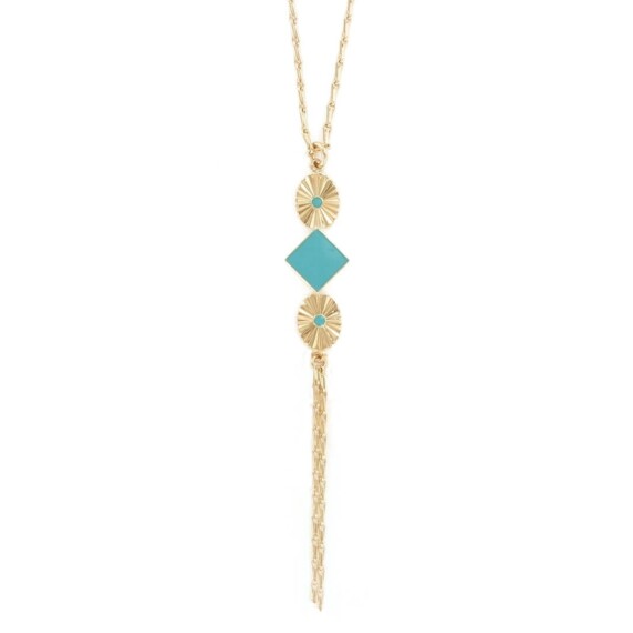 Parez-vous de subtiles couleurs azuréennes et solaires avec ce fin sautoir carré Shine Turquoise. Un bijou de choix made in France, signé de la créatrice Laëti Trëma.
