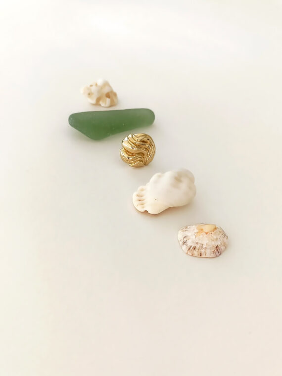 Californie, sable et océan : Voici les Boucles d’oreilles ondulées Beverly. Des bijoux fantaisie de créatrice poudrés de soleil et de brise marine. Vous qui aimez les bijoux poétiques, vous porterez avec joie ces petits trésors marins.