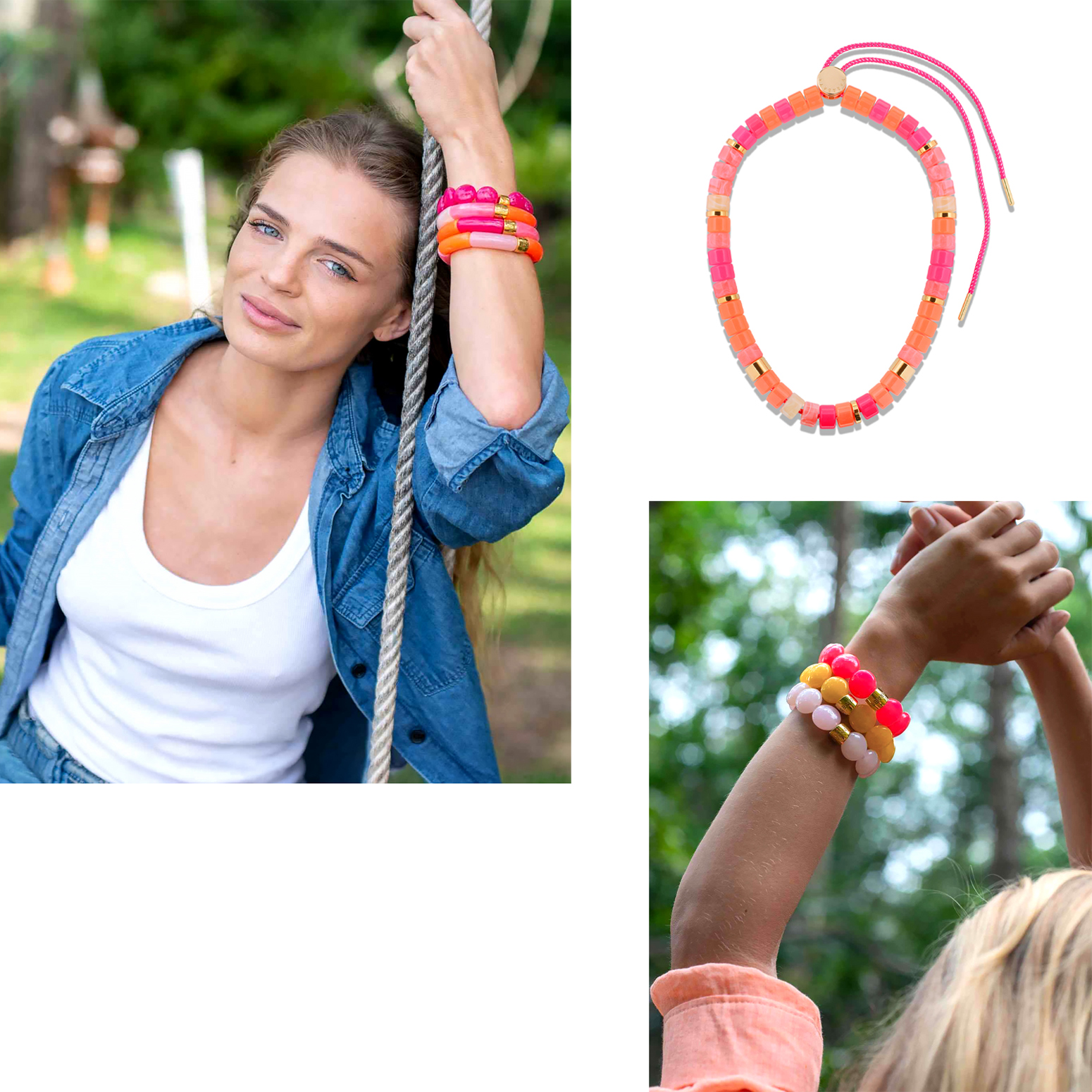 Les bracelets Pipocas PARABAYA sont les emblèmes de la marque : des perles “tube” qui structurent le poignet et donnent immédiatement du style. Leur force, c’est leur présence : un design affirmé, des couleurs qui vibrent, et un rendu graphique très mode. Ce sont des bracelets faits pour être portés :